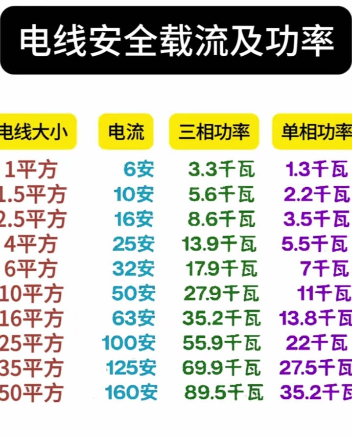 电线安全载流及功率